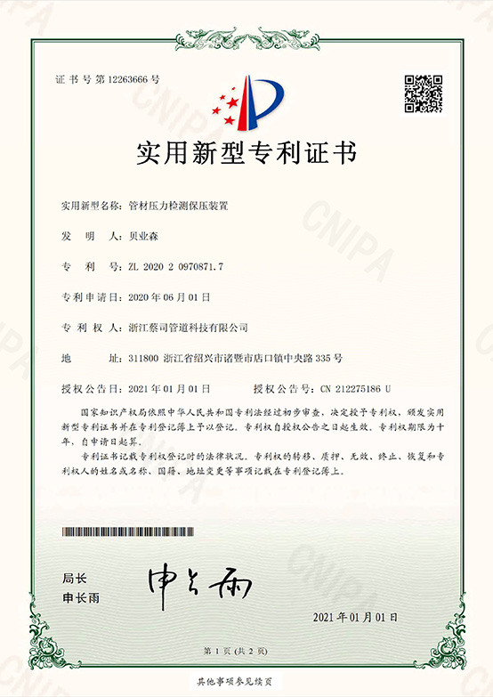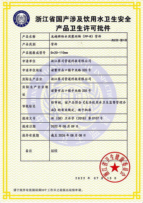 PPR管件(jiàn)衛生許(xǔ)可2022-1